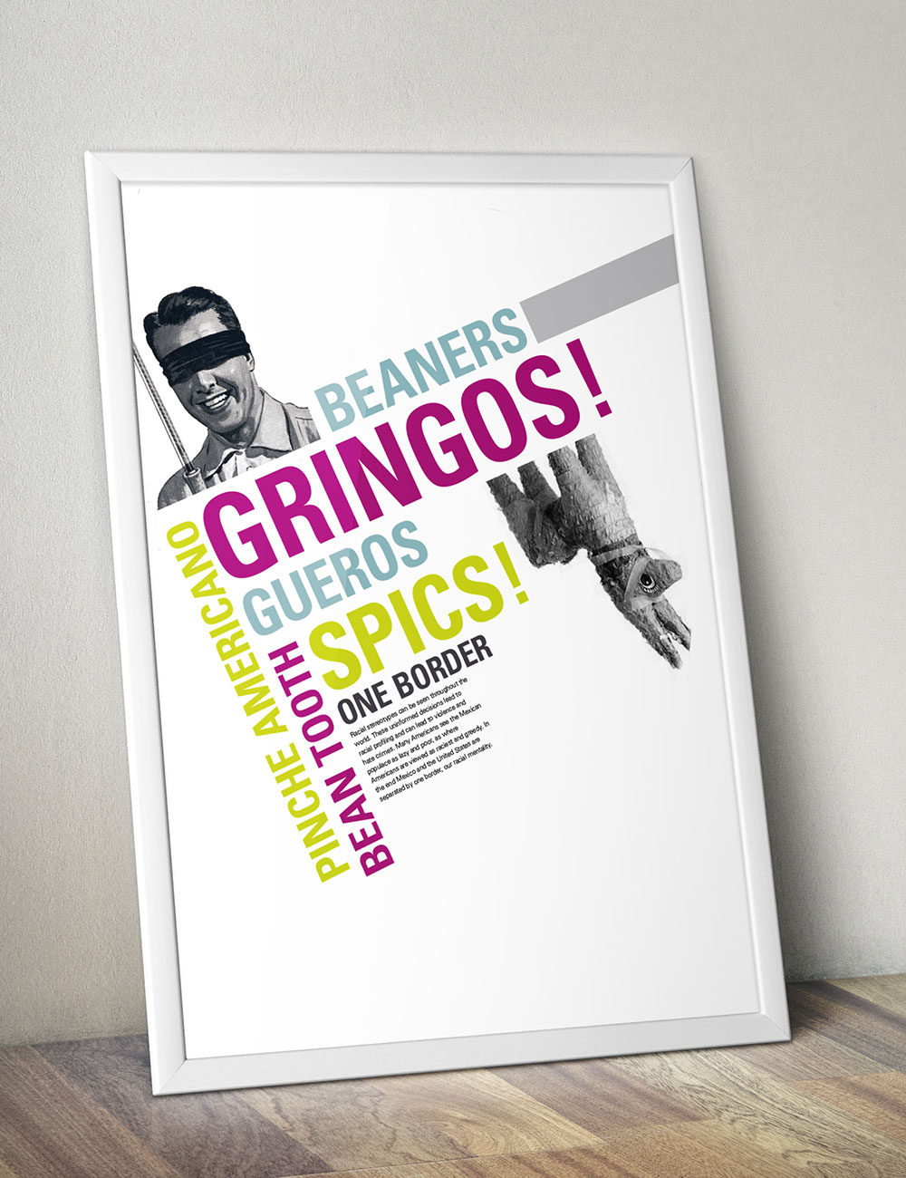 "One Border" looks at the power of language and stereotypes. These stereotypes are shown in our language and help to shape a culture where discrimination and bias are inherent in the way we speak. We could break down walls if we are conscious of the language we use and try to shift the cultural bias to our neighbors we share a border with.