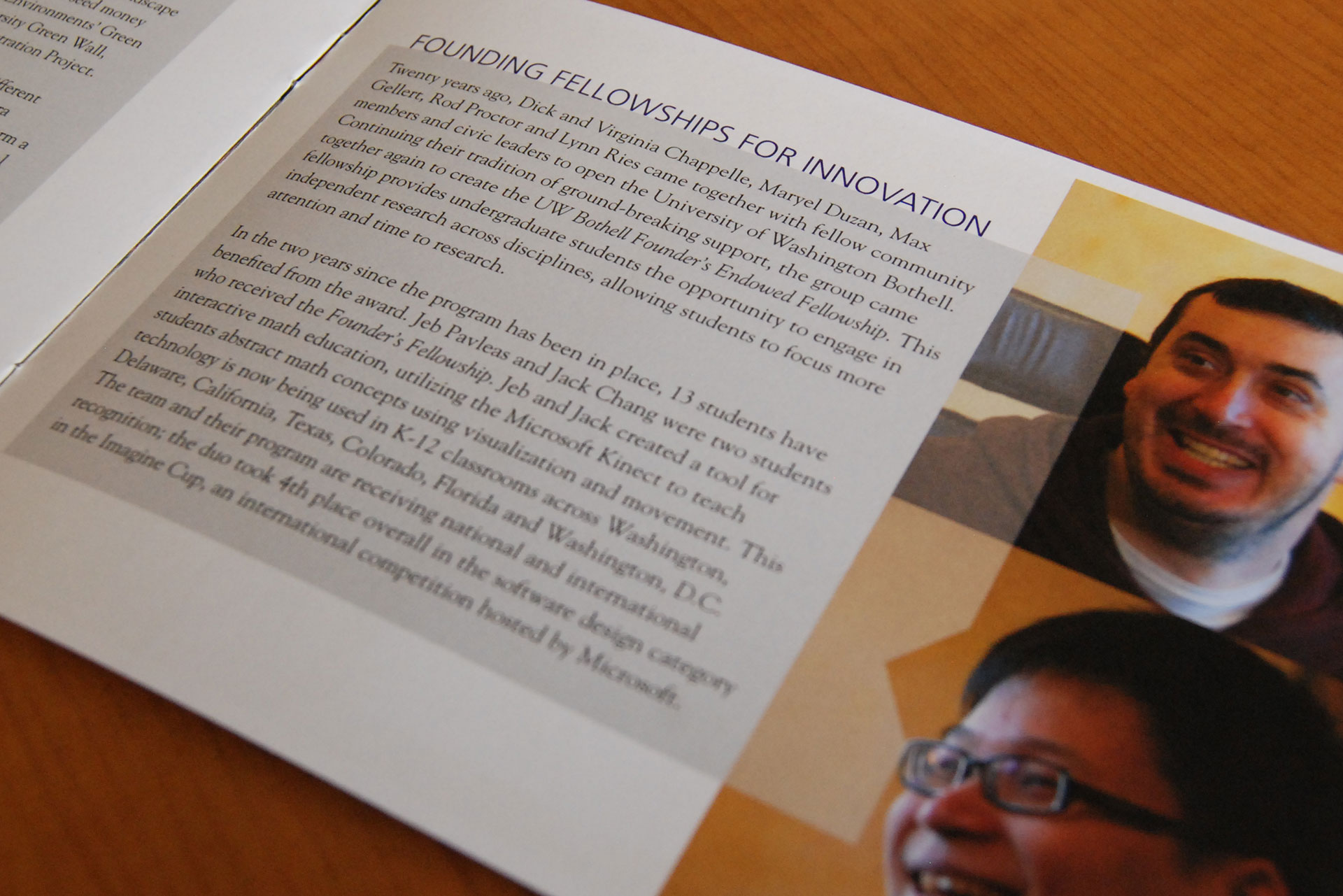 Donors who contribute $2,000 or more annually to any UW school, college, program, department or campus become members of the President’s Club. These loyal supporters want to make a difference at the UW — and they do, year after year. A brochure is sent out every quarter to highlight some of the amazing work these contributions fuel.